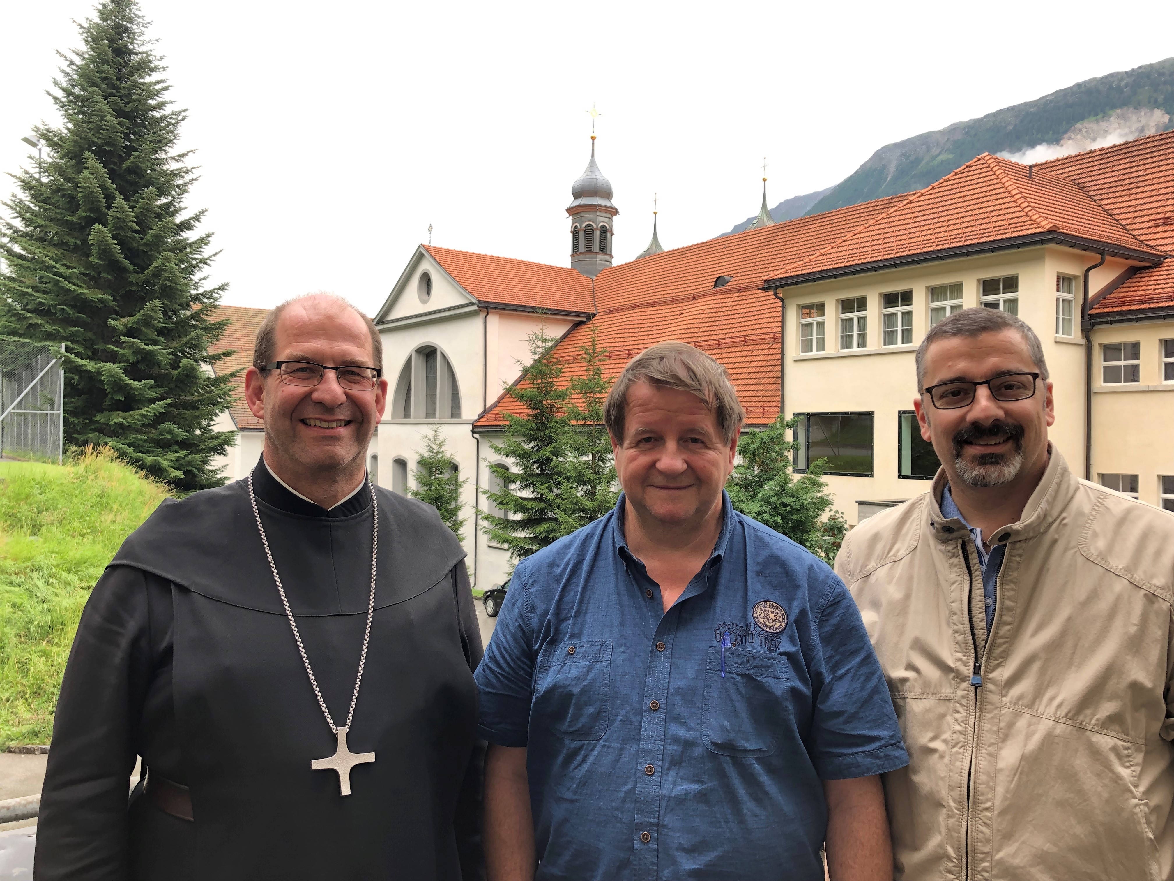 Auf dem Foto sehen sie Abt Vigeli, Hanspeter Müller-Drossaart und Alberto Palaia (OK-Präsident Festspiel).