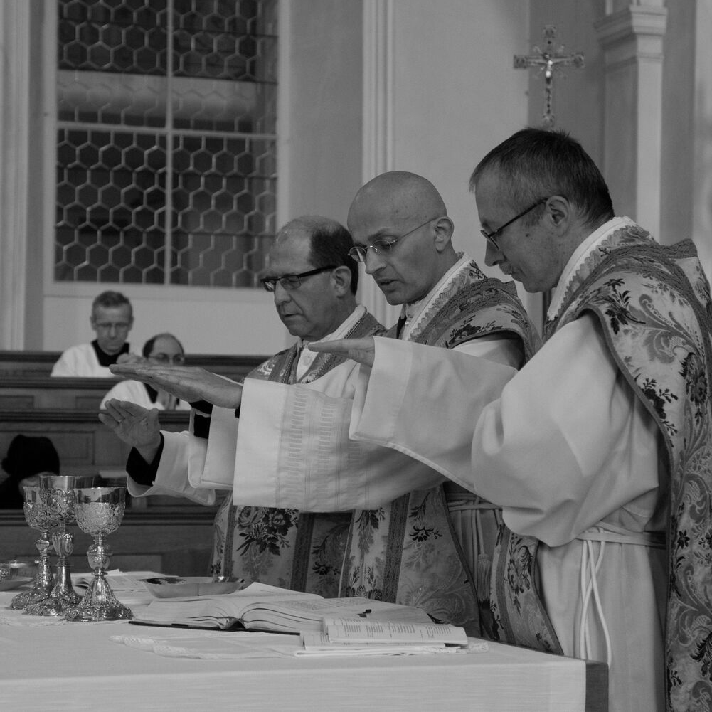 Deshalb fasst der heilige Benedikt seine gesamte Weisung in einem knappen Wort zusammen: «Der Liebe Christi nichts vorziehen» (RB 4,21; vgl. RB 72,11). Dieses Leitwort umfasst ein Zweifaches: restlos empfänglich sein für die Liebe, die Christus mir schenkt; die empfangene Liebe weiterschenken und aus ganzem Herzen Christus lieben, besonders auch im Mitmenschen. Die intensivste Form der Christusbegegnung ist der christliche Gottesdienst. Darum formuliert Benedikt ein paralleles Leitwort: «Dem Gottesdienst soll nichts vorgezogen werden» (RB 43,3).